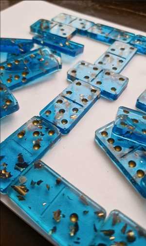 Костяшки для игры в домино, из эпоксидной смолы. Цвет синий. С золотой поталью. Ручная работа.