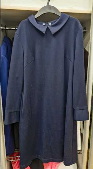 Школьный сарафан для девочки. Синий, с воротничком. Длинный рукав. 75% полиэстер 25% вискоза.