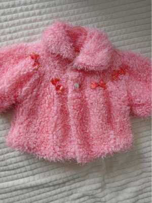 Болеро-жакет детский, вязаный из пушистой пряжи "травка" розового цвета с подкладом на девочку 2-4 годика.
