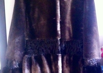 Продам шубу мутон, отделка рукова стриженый каракуль, капюшон соболь, цвет коричневый, отношена сезон.