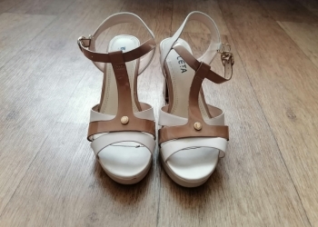 Женские босоножки размер 38. Производство Германия. На танкетке. Состояние хорошее. Носила очень мало. Покупала за 5000 руб.