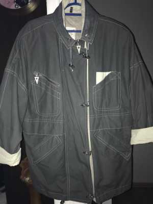 Куртка очень интересный фасон и дизайн (капюшон отстегивается на клепках) плечи 45 пог 59 длина изделия 94 длина...