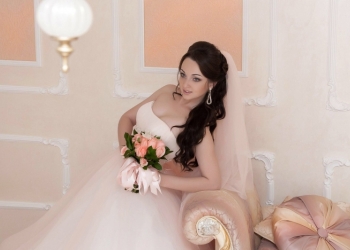 Продам роскошное свадебное платье с небольшим шлейфом, пудрового цвета, с вышитыми кружевами.