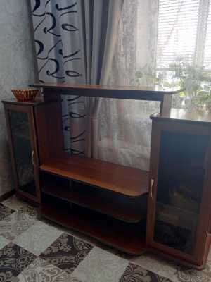 Продам полку напольную под телевизор,1,60 в длину,80 в высоту,имеются отделы под посуду,дверцы с темным стеклом,отделение...