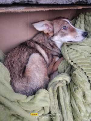Мы гуляли с моей мамой и мы увидели этого щеночка мы ему около дома поселили коробку там и в коробку мы и постелили плед...