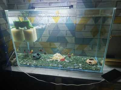 Продам аквариум на 100 литров,со всем содержимым,рыбки барбусы и сомики разных видов, улитки , фильтр , сифон, корм...