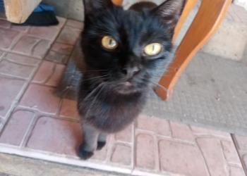 К моим соседям прибился котик, уже не маленький, ему примерно год. Живет на улице , его подкармливают.
