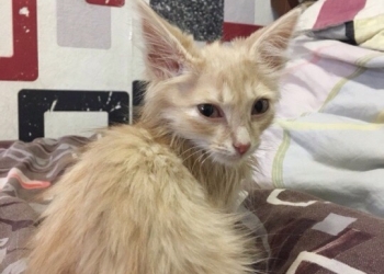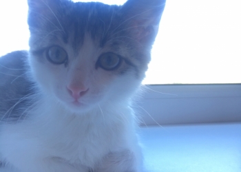 Кошечка, месяцев 5 от роду. Ушки обморожены и загнуты как у вислоухой. Сама очень, даже не так - ОЧЕНЬ ласковая.